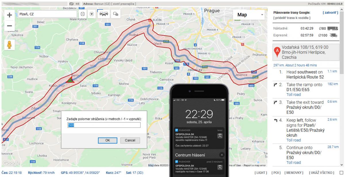 Každý zákazník môže naplánovať trasu pre svoje vozidlá a sledovať výkon - nástup na trasu, vybočenie z trasy a návrat na trasu. Služba je dostupná beplatne každému zákazníkovi v základnom balíku. Rovnako bezplatná je možnosť komunikovať so šoférmi prostredníctvom SMS spraác do 20 odoslaných SMS za measiac.