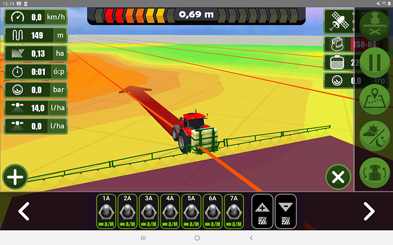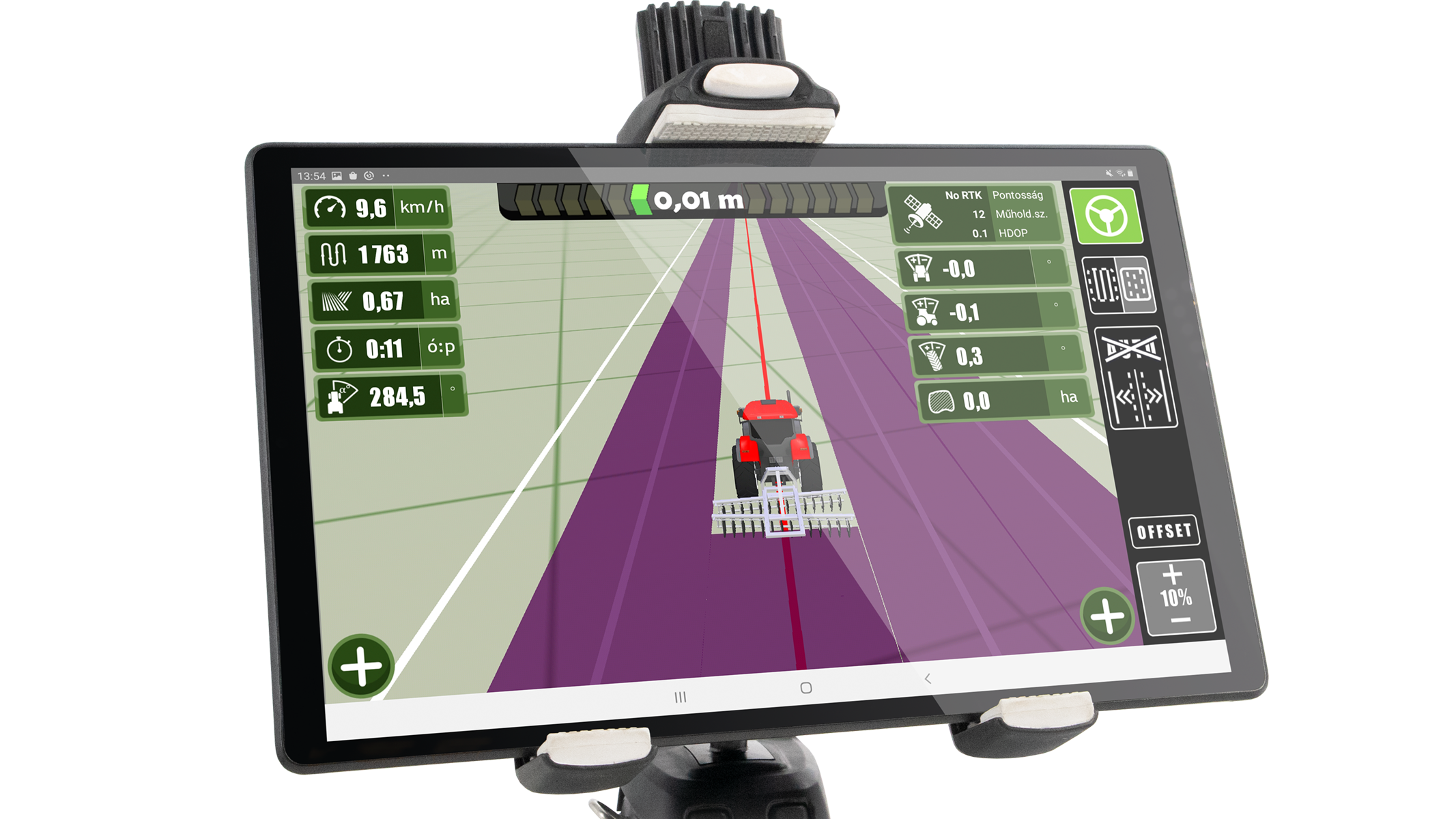 Dokáže navigovať / navádzať všetky druhy strojov a činností. Zabezpečí aj ovládanie trisiek postrekovača a dávkovanie hnojiva za polovičnú cene insvestície ako u koncernových riesšení.